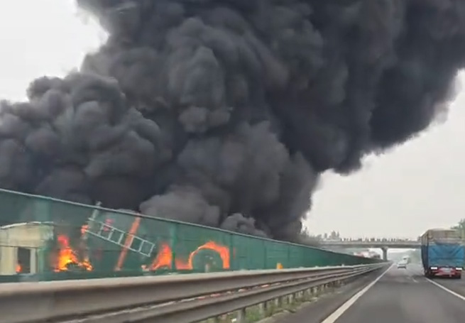 危險品罐車被撞泄漏起火10月17日上午9時13分左右,長深高速唐山至天津方向田莊站附近(K996處),一輛油罐車發(fā)生碰撞后側(cè)翻起火,現(xiàn)場燃起大火,情況十分緊急。視頻顯示,事故路段火光沖天,黑煙如巨龍般翻滾升騰,起火長度達(dá)十幾米,現(xiàn)場車輛排成長龍,導(dǎo)航地圖上赫然顯示“150公里封路...