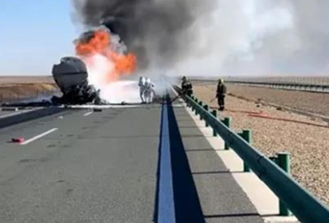 11月14日8時26分,G7京新高速1872公里(內(nèi)蒙古往新疆方向)處發(fā)生一起車輛追尾起火事故。接到警情后,甘肅酒泉消防部門立即出動3輛消防車和12名指戰(zhàn)員前往處置。消防救援人員到達(dá)現(xiàn)場,公安交警部門已對事故路段進(jìn)行交通管制,經(jīng)偵查,一輛載有航空煤油的油罐車追尾一輛載有變壓器的貨...