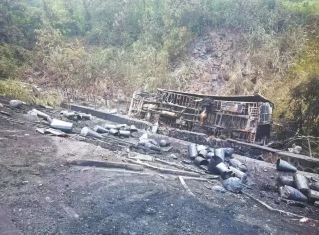 1、1死1傷!江西吉安工廠爆炸 7月24日上午,江西省吉安市吉水縣一玻璃廠化學(xué)實(shí)驗(yàn)室發(fā)生爆炸。據(jù)悉,該爆炸是由于化學(xué)實(shí)驗(yàn)室實(shí)驗(yàn)員操作不當(dāng)所致,事故造成1人死亡1人輕傷。 現(xiàn)場視頻顯示,發(fā)生爆炸的是位于路邊的一幢三層廠房,二層的多扇窗戶玻璃被震碎,用來懸掛空調(diào)外機(jī)的鐵架嚴(yán)重變形。一旁路面上,鐵架和變形的空調(diào)外機(jī)散落一地。 據(jù)了解,由于化學(xué)實(shí)驗(yàn)室內(nèi)實(shí)驗(yàn)人員操作不當(dāng),引發(fā)了氣流沖擊,造成了小范圍的爆炸。 吉水縣應(yīng)急管理局工作人員稱,爆炸造成1人死亡1人受輕傷!皩(shí)驗(yàn)室里的實(shí)驗(yàn)員因搶救無效死亡,另有一人在室外受了輕傷,已往醫(yī)院!蹦壳,當(dāng)?shù)卣谔幚砩坪笫乱恕?/span> 2、江西上饒;愤\(yùn)輸事故 7月22日6時(shí)5分左右,梨溫高速上饒市鉛山縣境內(nèi)楊梅嶺服務(wù)區(qū)西向東1000米左右,發(fā)生一起交通事故,事故造成大貨掛車司機(jī)被嚴(yán)重?zé)齻?dāng)場死亡,兩貨車被燒毀(浙E29989贛EC557掛和贛C33145),;愤\(yùn)輸車側(cè)翻至路邊深約10米山溝里并被燒毀,運(yùn)輸棉布貨運(yùn)大掛車橫跨梨溫高速護(hù)欄燃燒時(shí),同時(shí)燒壞了正上方22萬伏高壓線。 ;愤\(yùn)輸貨車側(cè)翻時(shí)灑落在路邊的桶裝未被燃燒的1.68噸危險(xiǎn)化學(xué)品(環(huán)丙乙炔)。造成梨溫高速上饒至鷹潭段雙向交通分流4個(gè)多小時(shí),由西向東單向中斷交通5小時(shí)50分,由東向西陸續(xù)中斷交通約3小時(shí)。 據(jù)了解環(huán)丙乙炔高度易燃液體和蒸氣,易造成皮膚刺激和嚴(yán)重眼損傷,對水生生物有害并具有長期持續(xù)影響。 通過多部門協(xié)調(diào)配合、連續(xù)作戰(zhàn)近9個(gè)小時(shí),及時(shí)疏通了滬昆高速大動(dòng)脈,確保了救援安全。