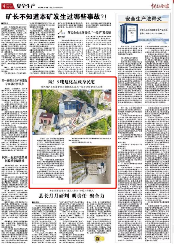10月14日,《中國應(yīng)急管理報》第4版刊發(fā)報道《險!5噸;凡厣砻裾 浙江桐廬縣應(yīng)急管理局順藤摸瓜查處一起非法經(jīng)營;钒浮芬晃。全文如下: 2021年10月14日,浙江桐廬縣應(yīng)急管理局根據(jù)日常執(zhí)法檢查中發(fā)現(xiàn)的線索對轄區(qū)內(nèi)某化工有限公司開展突擊檢查,發(fā)現(xiàn)該公司所在民宅的輔房內(nèi)存放槍水、55%工業(yè)氫氟酸等;饭5噸。 經(jīng)執(zhí)法人員查實,該公司未取得危險化學(xué)品經(jīng)營許可證,且該儲存場所安全條件不符合《危險化學(xué)品經(jīng)營企業(yè)安全技術(shù)基本要求》的規(guī)定,一旦發(fā)生事故,將可能導(dǎo)致廠區(qū)及周邊居民區(qū)200余人中毒的嚴(yán)重后果。 為第一時間消除隱患,保障周圍居民的安全,桐廬縣應(yīng)急管理局當(dāng)晚就對該批危險化學(xué)品依法進(jìn)行扣押并轉(zhuǎn)移至安全場所。次日,該局以涉嫌非法經(jīng)營危險化學(xué)品對涉事企業(yè)立案調(diào)查。 通過多次走訪取證、專家論證,涉事企業(yè)因涉嫌違反《刑法》第134條之一第三項的規(guī)定,該案被桐廬縣應(yīng)急管理局根據(jù)行刑銜接工作機(jī)制移送公安機(jī)關(guān),后公安機(jī)關(guān)以涉嫌危險作業(yè)罪進(jìn)行立案偵查。