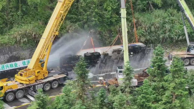 6月3日凌晨5時許,湖南藍山縣一輛裝載液化石油氣的重型半掛牽引車在行駛至G537線南風(fēng)坳路段時發(fā)生側(cè)翻,情況非常危險。事故現(xiàn)場,在G537線南風(fēng)坳路段,一輛湘M牌照的槽罐車側(cè)翻于交通干道彎道處,罐體內(nèi)裝載約有25噸液化石油氣,一旦罐體發(fā)生泄露,將威脅到周圍幾公里內(nèi)群眾的生命安全。 根據(jù)現(xiàn)場情況,立即成立了現(xiàn)場指揮部,劃定警戒區(qū)域,對警戒范圍內(nèi)的人員進行疏散,并對G537所城至南風(fēng)坳路段實施交通管制,保障救援通道暢通。中午12時10分許,在確,F(xiàn)場無氣體泄漏后,吊裝作業(yè)組對槽罐車實施扶正作業(yè)。經(jīng)過13個小時全力救援和處置,順利完成了槽罐車側(cè)翻現(xiàn)場清理和安全評估工作,G537線南風(fēng)坳路段也于19時恢復(fù)通行。截至4日凌晨2點,槽罐車被安全轉(zhuǎn)移至所城液化氣站,并將罐體內(nèi)的液化氣安全卸載,險情得到解除。