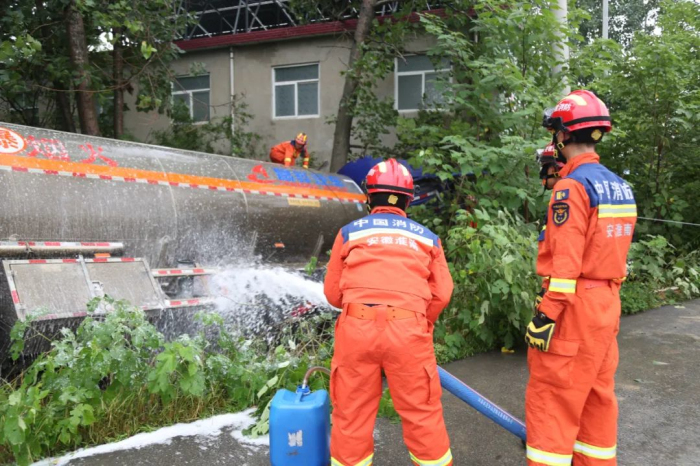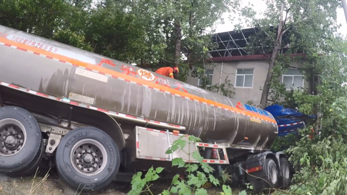 6月7日11時許,淮南市大通區(qū)206國道萬家崗村路段發(fā)生驚險一幕,兩輛大貨車在雨中行駛時,因路面濕滑,避讓不及發(fā)生碰撞。其中載有30余噸汽油的油罐車側(cè)翻至路邊樹林,駕駛員被困變形駕駛室,情況萬分危急。 事故現(xiàn)場可見粉罐車橫亙路中,駕駛室完全損毀,油罐車則側(cè)翻在距民房僅數(shù)米的樹林間,車頭嚴重變形且油箱破裂漏油。消防人員立即采取"雙線作戰(zhàn)",一組使用液壓破拆工具營救被困司機,另一組鋪設泡沫水帶覆蓋泄漏油品。經(jīng)1小時緊張救援,被困司機成功脫險送醫(yī),據(jù)粉罐車司機介紹,事發(fā)時雙方都沒有看到對方的車輛,等反映過來時已經(jīng)避讓不及。 隨后,現(xiàn)場調(diào)來了吊車對事故車輛進行轉(zhuǎn)移,對油罐車內(nèi)的汽油開展倒罐作業(yè)排除險情。